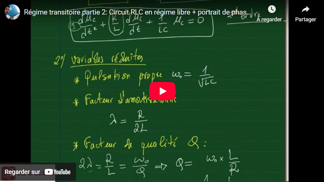 Régime transitoire partie 2: Circuit RLC en régime libre + portrait de phase (MPSI PCSI TSI)